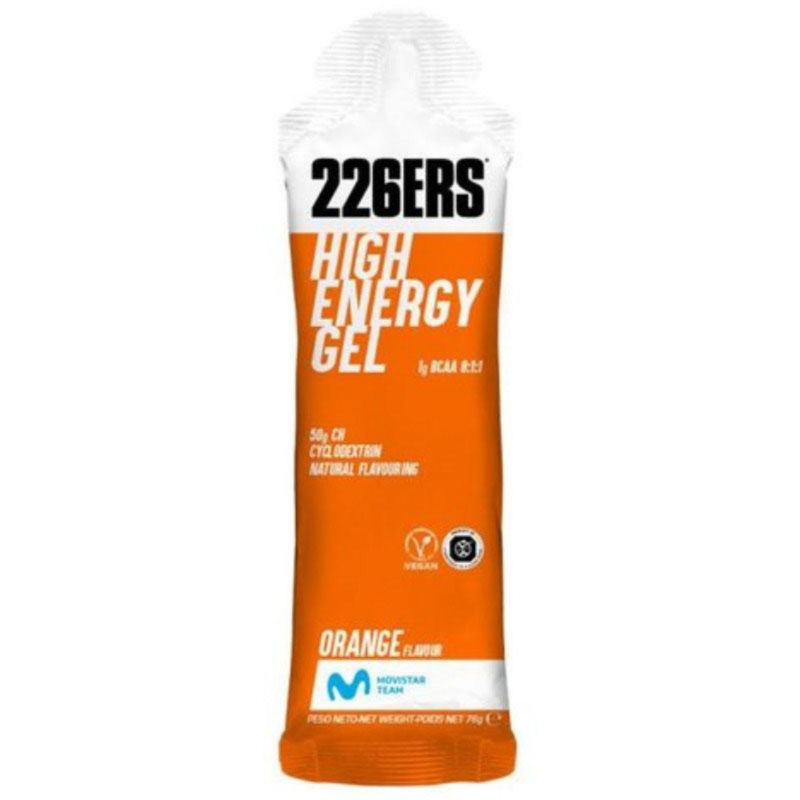 Sviluppato in collaborazione con il Movistar Cycling Team, il 226ERS High Energy Gel fornisce 50 grammi di carboidrati per porzione.... Sviluppato in collaborazione con il Movistar Cycling Team, il 226ERS High Energy Gel fornisce 50 grammi di carboidrati per porzione. Questo gel energetico utilizza come fonte principale di carboidrati la ciclodestrina, un carboidrato avanzato che fornisce un rifornimento più efficiente e veloce di glicogeno. 226ERS High Energy Gel ha il sigillo di approvazione della Lista di Colonia, la più grande piattaforma di prevenzione del doping al mondo per gli integratori alimentari. La Lista di Colonia include solo prodotti rigorosamente testati per garantire che non contengano sostanze vietate secondo l'elenco dell'Agenzia Mondiale Antidoping (WADA). Vantaggi: Fornisce un rilascio di energia di lunga durata, ideale durante e dopo l'esercizio fisico. Favorisce l'assorbimento del glucosio. Riduce i problemi di stomaco e favorisce la digestione. Non inibisce la combustione dei grassi. Contiene solo aromi naturali. Facile da trasportare. Fornisce un picco di insulina più basso, che accelera l'assorbimento del glucosio a livello cellulare e mantiene i livelli di zucchero nel sangue stabili più a lungo. Senza glutine, vegano e senza doping Fornisce 200Kcal per gel / 50 grammi di carboidrati Tipi di gel energetico 226ERS: Gel di base: Limone, Banana, NeutroGel di base+ BCAA: Contengono 1 g di BCAA in rapporto 8:1:1: Cassis, Arancia MelaBasic Gel + Caffeina: Caffè Espresso (80 mg o caffeina), Ciliegia (160 mg o caffeina)Gel base Salato: 250 mg di sodio e un po' di sale: Fragola, Arachidi Miele Uso consigliato: Durante la gara o l'allenamento, assumere un gel High Energy Sport ogni 20-45 minuti. Si consiglia di assumerlo con 200-300 ml di acqua o di bevanda sportiva. Valore nutrizionale: 100 gr 76 gr Energia 263 kcal / 1118 kJ 200 kcal / 850 kJ I grassi 0 g 0 g di cui grassi saturi 0 g 0 g Carboidrati 66 g 50 g di cui zuccheri 30 g 23 g Fibra alimentare 0 g 0 g Proteine 0 g 0 g Sale 0,13 g 0,1 g Calcolo effettuato sulla base dei valori teorici noti o attuali dell'ingrediente descritto. Ingredienti: Acqua, maltodestrina (maltodestrina DE15, destrina ciclica altamente ramificata* (cluster dextrin®), maltodestrina DE6), sciroppo di glucosio, saccarosio, aroma naturale, regolatori di acidità (acido citrico, citrato di sodio), cloruro di sodio, agenti gelificanti (gomma di gellano), conservante (sorbato di potassio). Dichiarazione allergeni UE: Ga Attenzione:Gli integratori alimentari non devono sostituire una dieta varia ed equilibrata. Non superare la dose giornaliera raccomandata. Tenere fuori dalla portata dei bambini piccoli. Conservare il contenitore ben chiuso in un luogo asciutto e fresco.